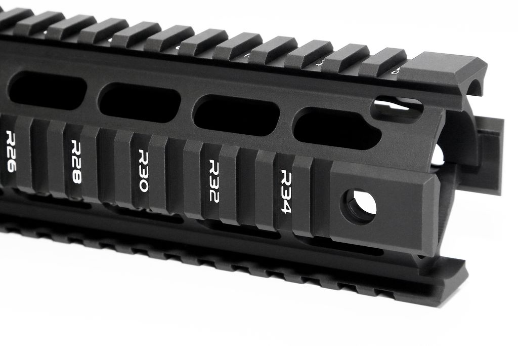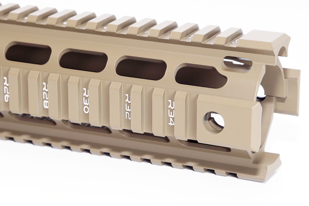 The Airsoft M4 RAS designed to fit on M4 Airsoft gun series. • Two push button sling swivel mounting points at the front. • Four push button sling mounting points at the front and back. • Slots around the rails provide maximum ventilation around the rails. • CNC machined from aviation grade aluminum to MIL-1913